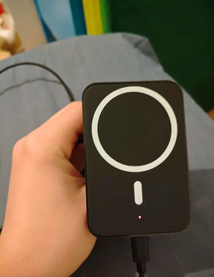 Answer 3: This power bank features a 5000mAh capacity, offering a compact and portable design. It is lightweight enough to snap onto your phone for secure charging while you are on the go.